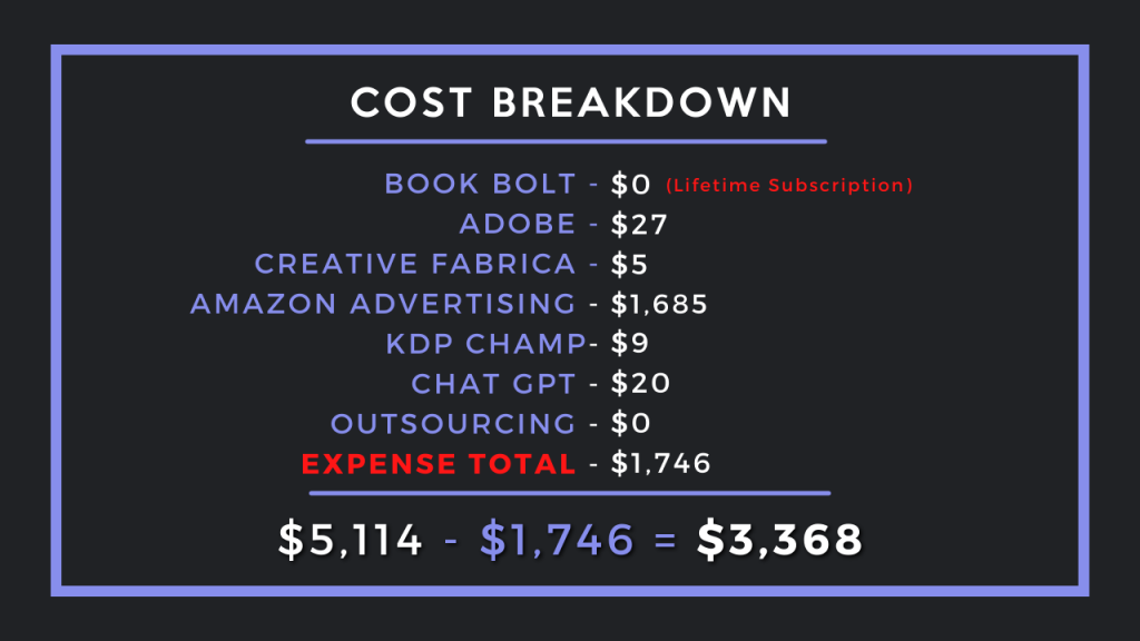 So, if I take away the expenses from my royalties…. I am left with $3,368.